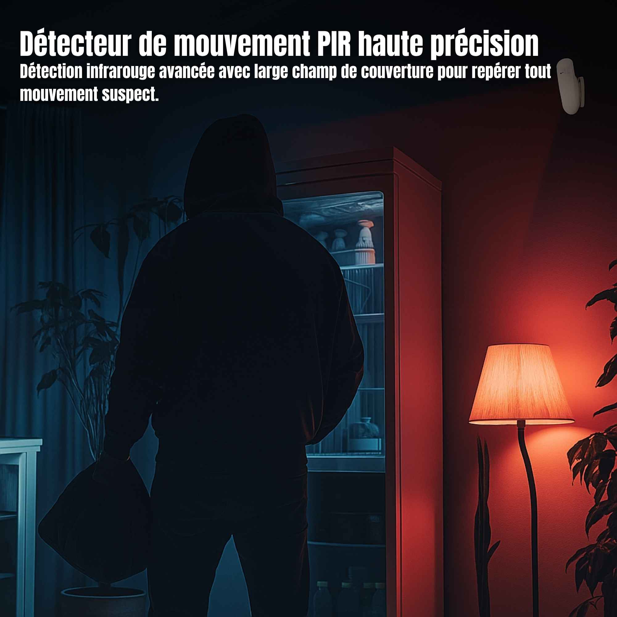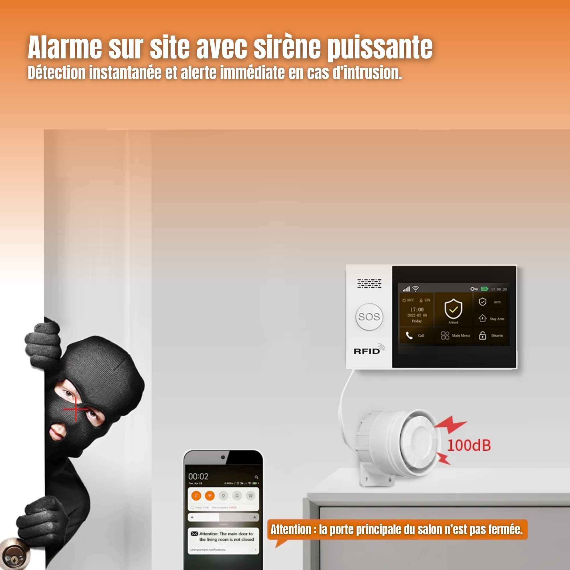En cas de détection, vous êtes alerté via une notification push, un SMS, un appel vocal, ainsi que par le déclenchement d'une sirène sonore.
