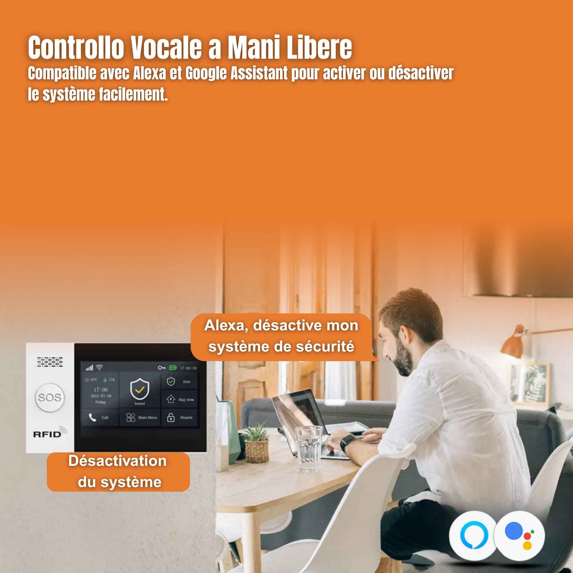 Compatibilité avec les assistants vocaux permettant l’exécution des ordres d’armement et de désarmement du système sans manipulation physique de l’unité centrale.