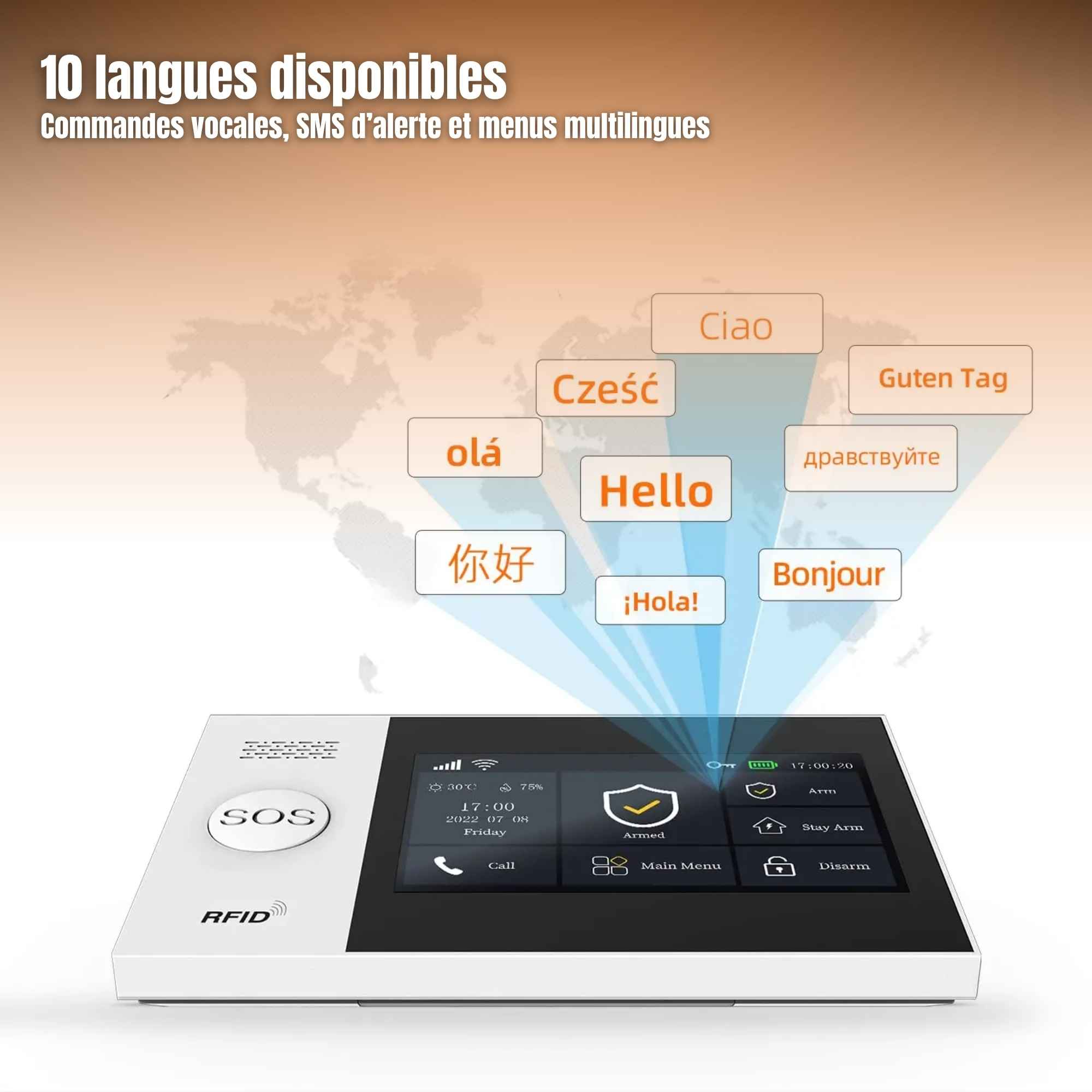 Le système propose un choix de 10 langues, incluant le français, l’anglais, l’espagnol, l’allemand, l’italien et le portugais.
