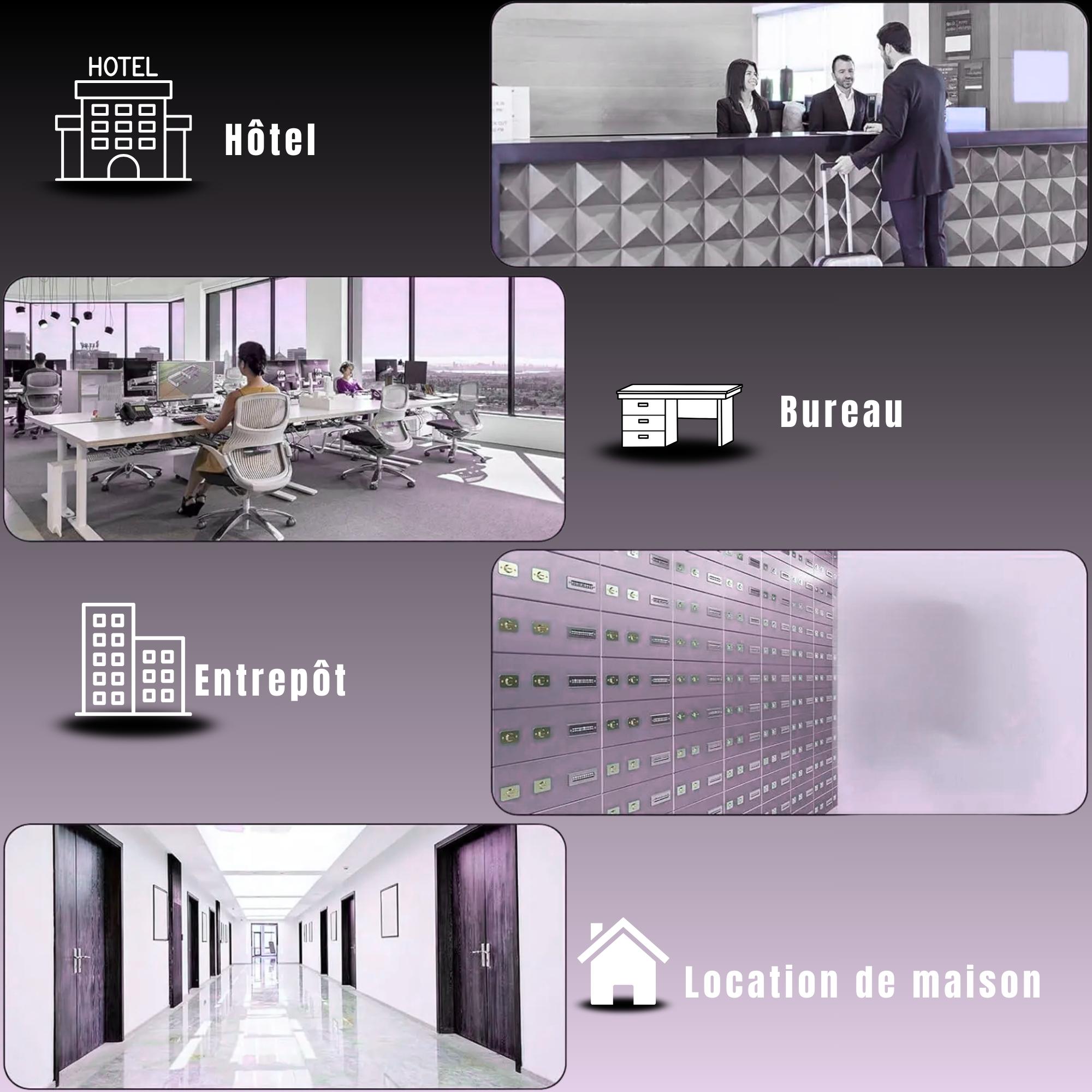 Sa conception est optimisée pour la gestion centralisée des accès dans les structures professionnelles : hôtellerie, parcs automobiles, agences immobilières et locaux administratifs.