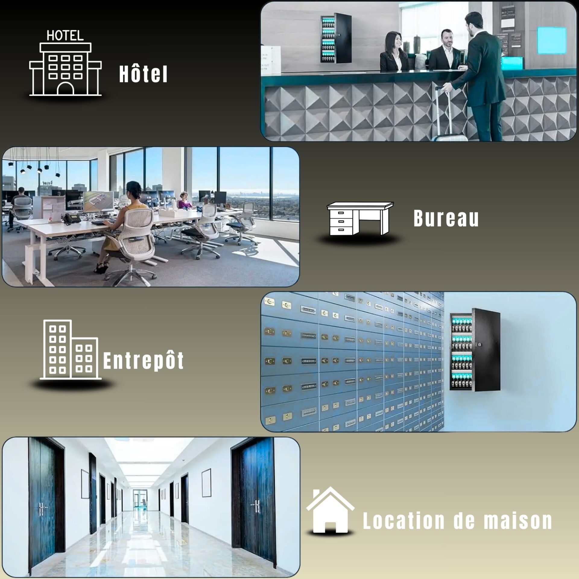 Gamme déclinée en trois finitions (noir, bleu ou gris) pour faciliter l’intégration architecturale ou la distinction visuelle des zones de stockage.