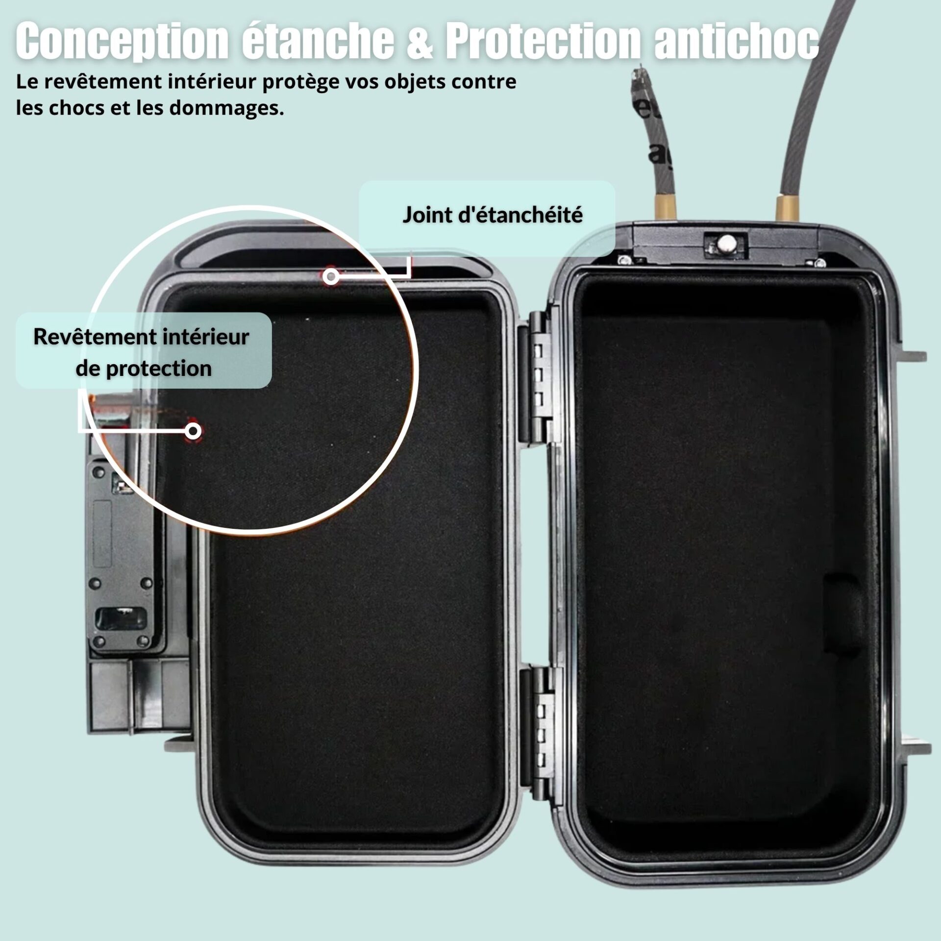 Compartiment avec revêtement absorbant et joint d’étanchéité pour une protection fiable de vos objets fragiles.