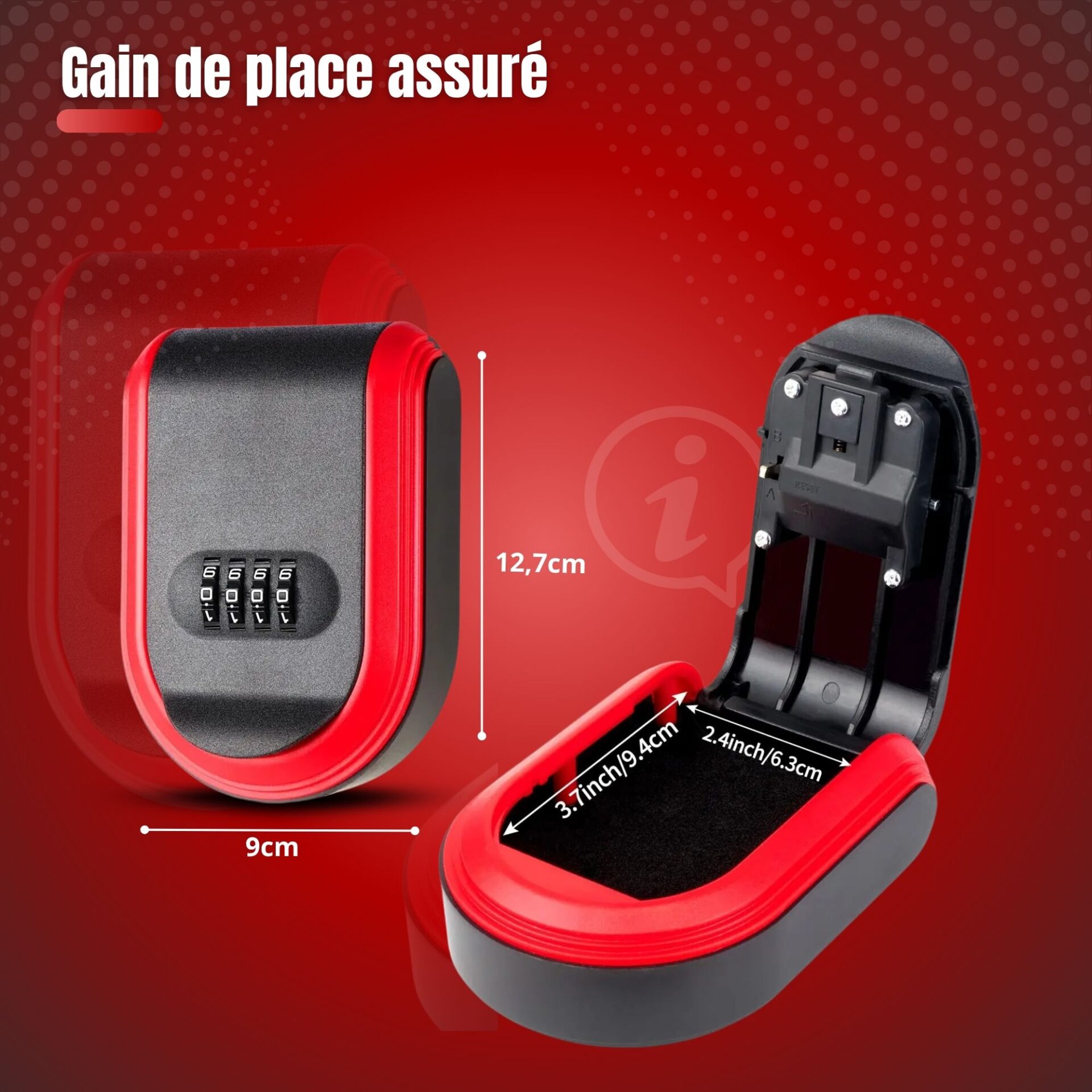 Le boîtier s'ouvre via un code à 4 chiffres. Vous pouvez configurer et modifier votre combinaison personnelle pour une gestion d'accès personnalisée.