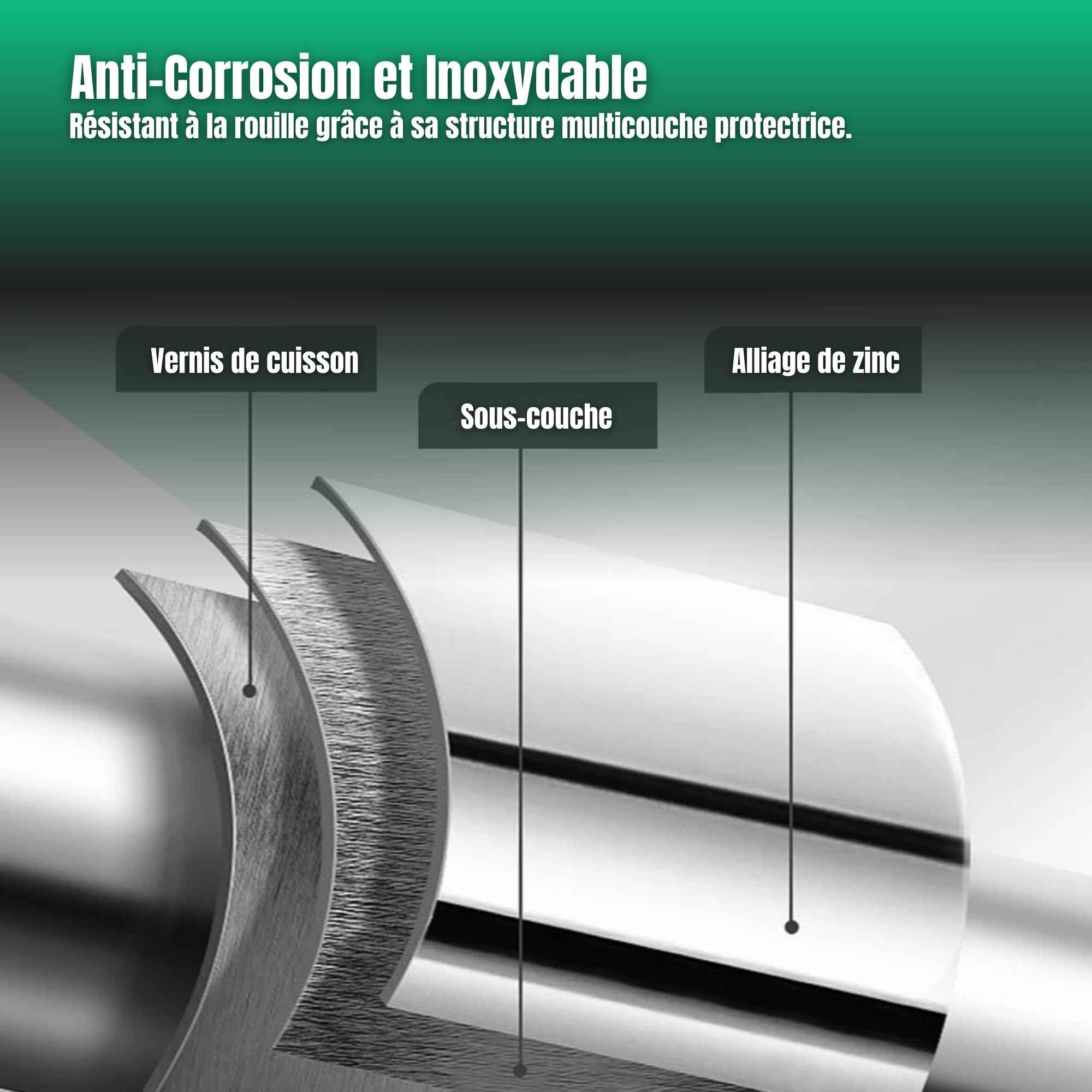 Le corps est fabriqué en alliage de zinc, choisi pour sa résistance mécanique et sa durabilité.