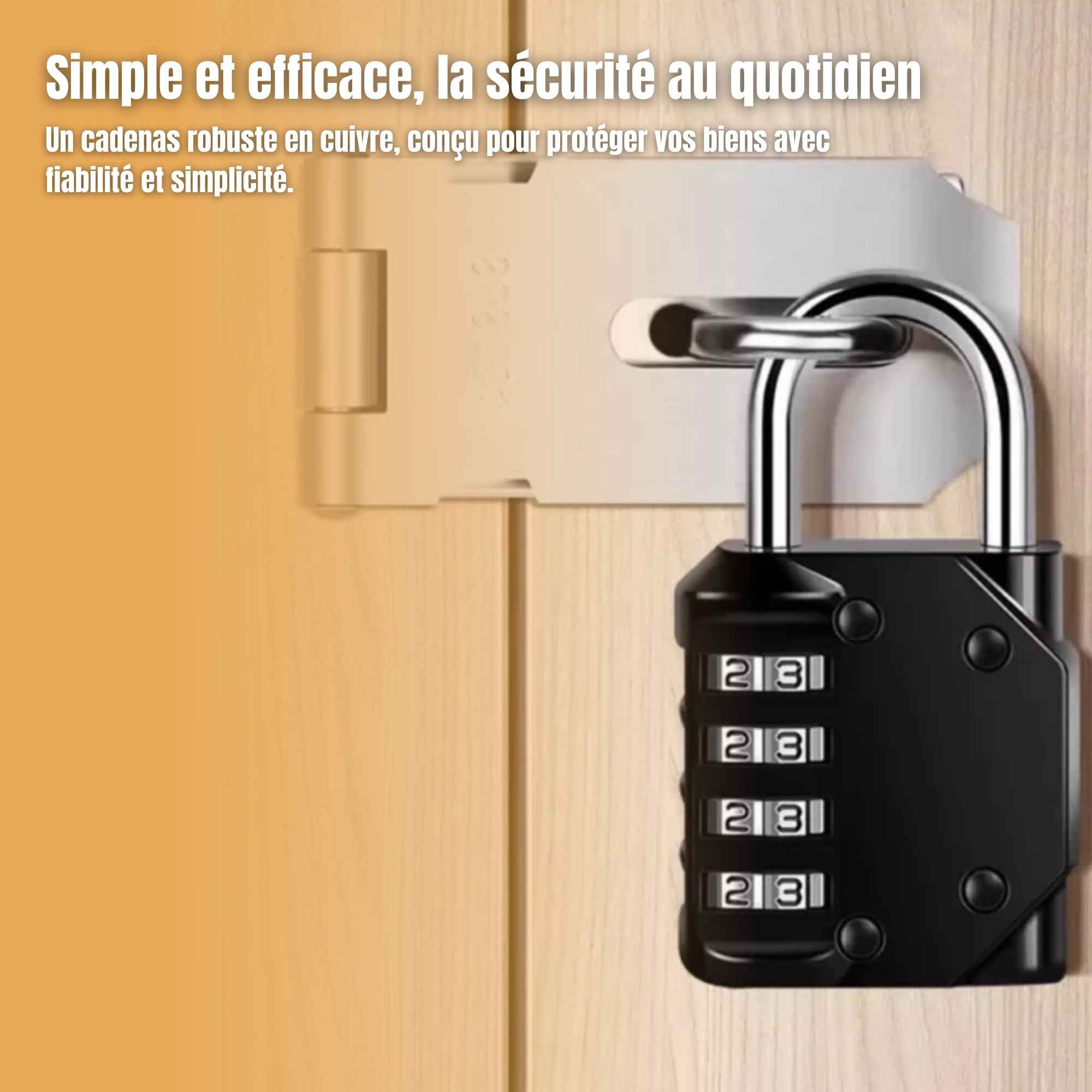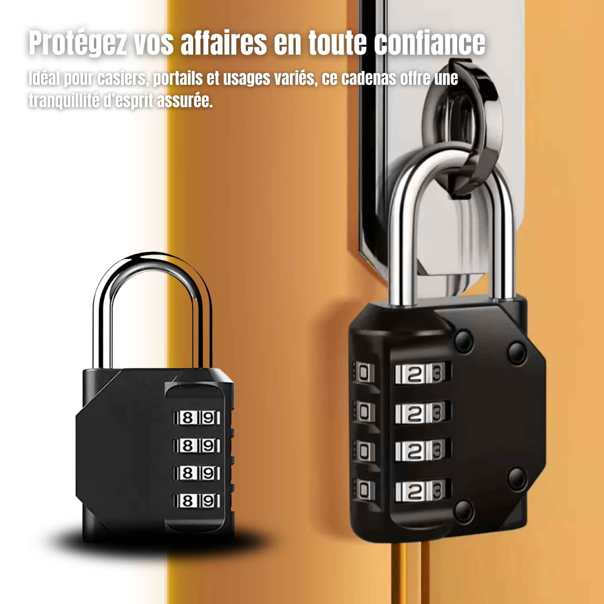 Le verrouillage s'effectue par une combinaison à code numérique, ne nécessitant ni clé ni alimentation par batterie.