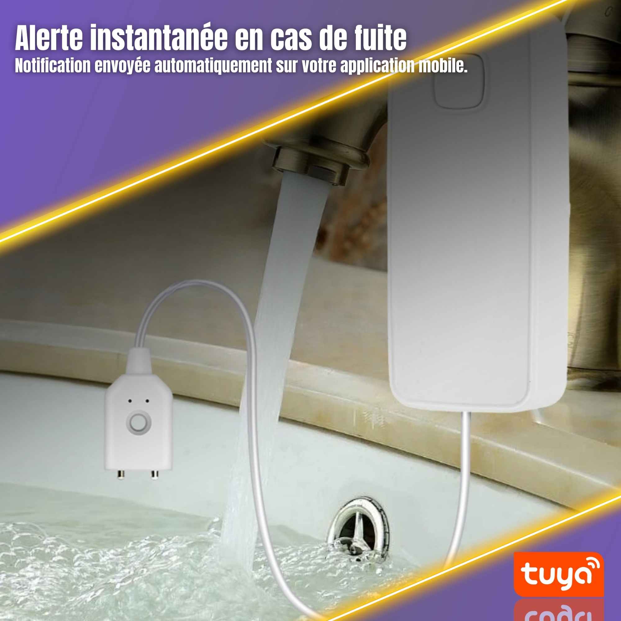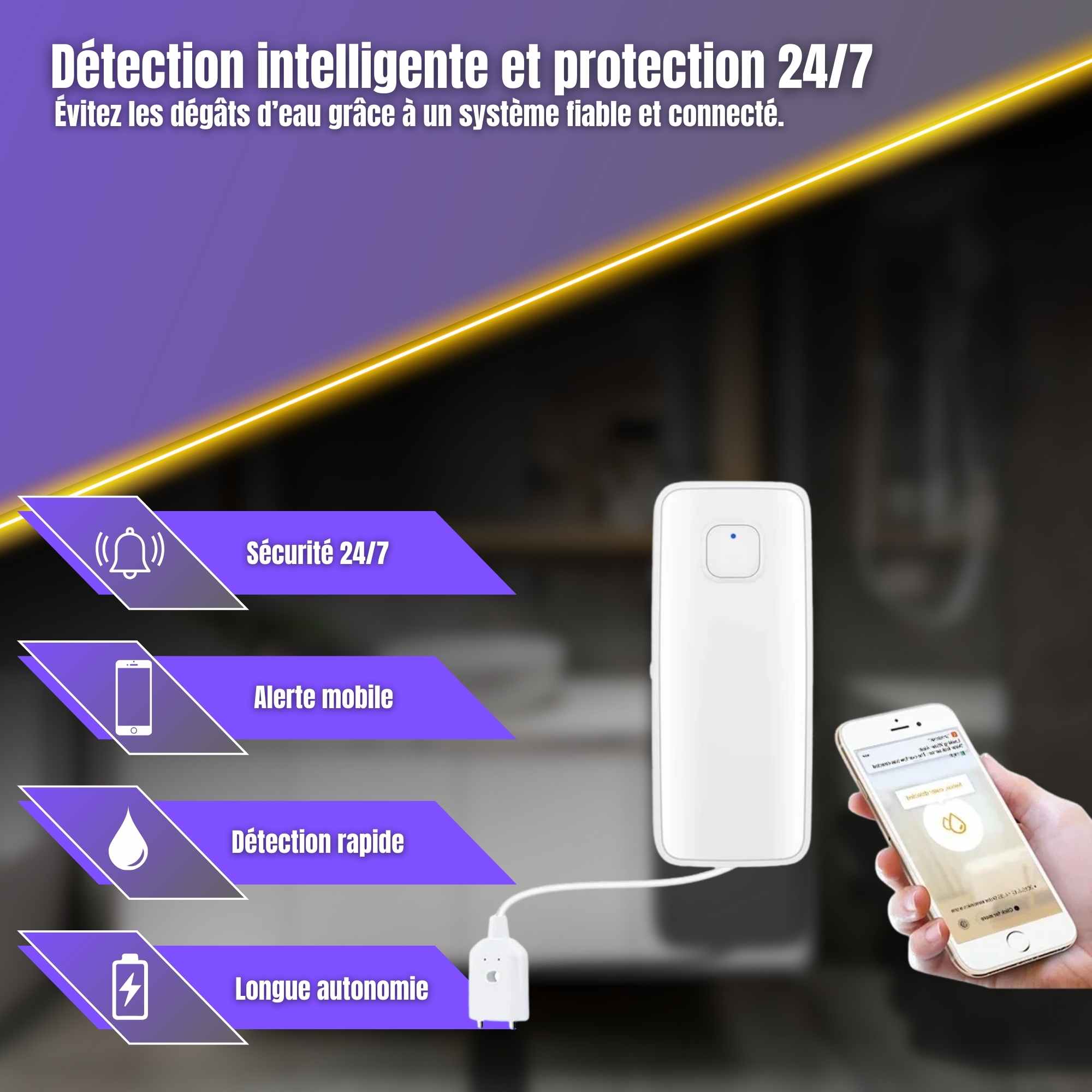 Le système combine une alarme sonore de 80 dB pour alerter les personnes sur place et l'envoi d'une notification immédiate sur votre smartphone via l'application Smart Life ou Tuya.