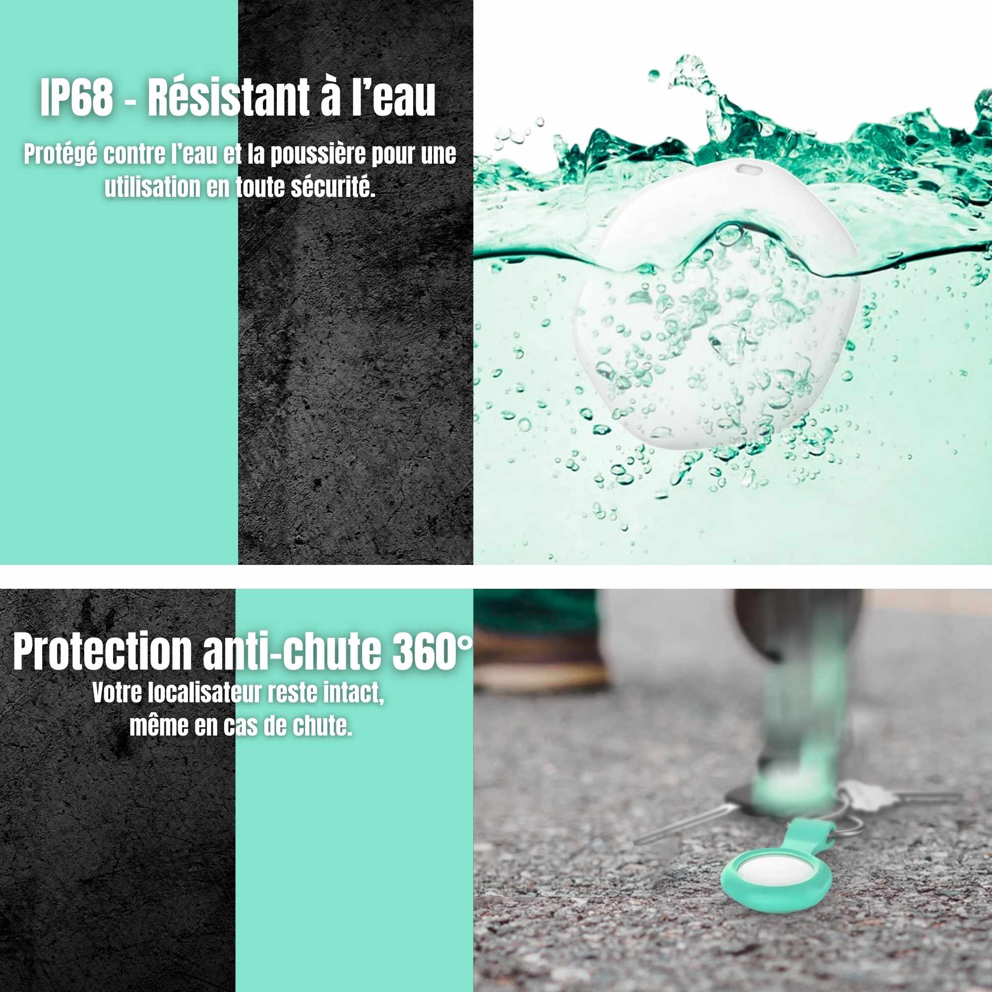 ✔️ IP68 – Étanche & Anti-chute 360°