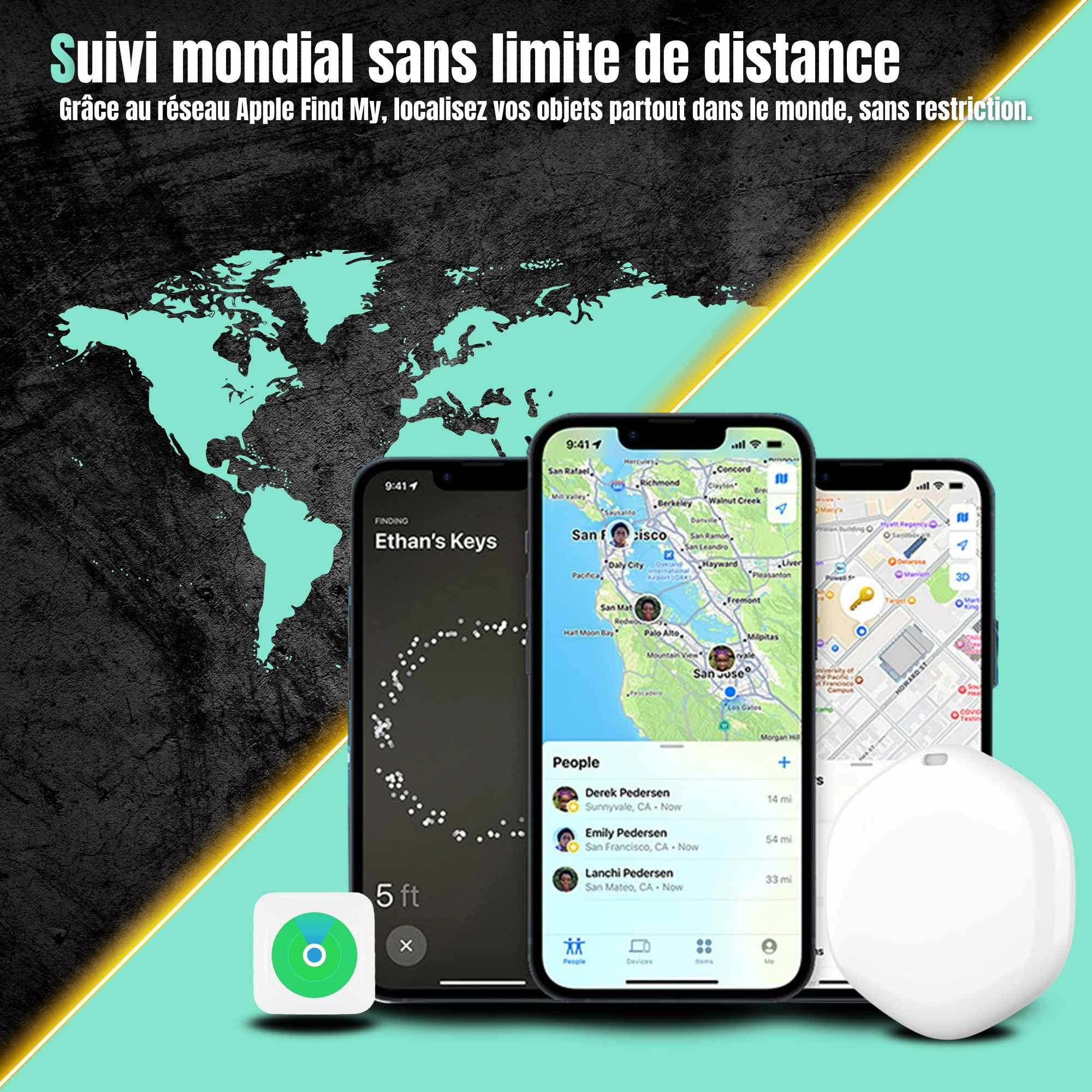 Ce dispositif est techniquement configuré pour fonctionner avec les appareils sous iOS (iPhone et iPad) via les protocoles de localisation natifs du système.