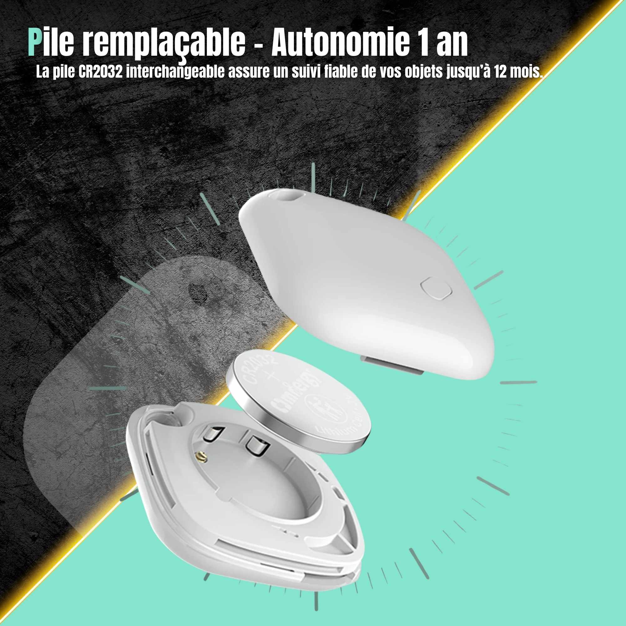 Système énergétique utilisant une cellule bouton standard remplaçable, offrant une continuité opérationnelle jusqu’à 12 mois selon les conditions d’usage.