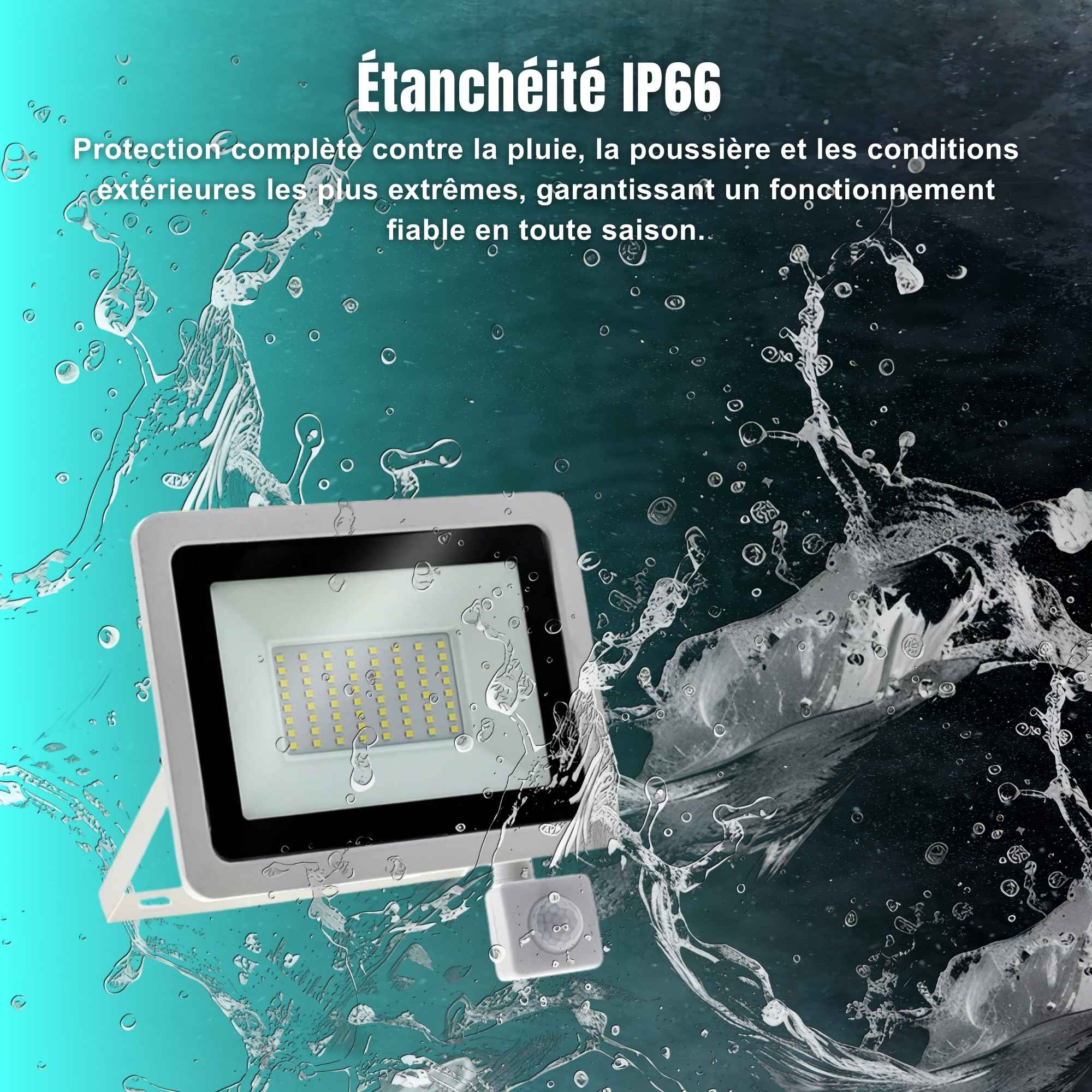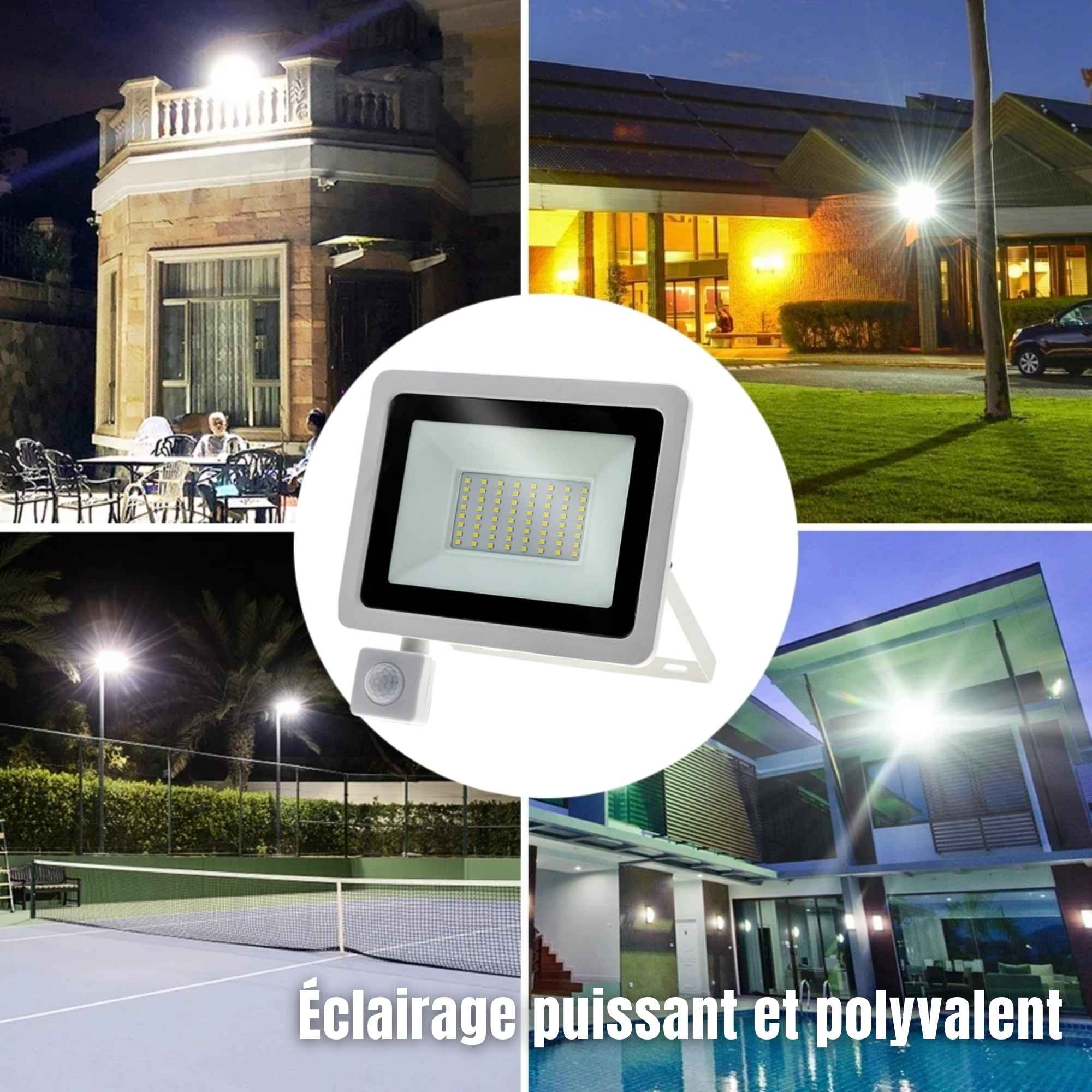 Ce projecteur combine une haute intensité lumineuse avec une efficacité énergétique accrue. Son capteur réglable en fait une solution idéale pour les zones logistiques, les façades industrielles et les périmètres de stockage.