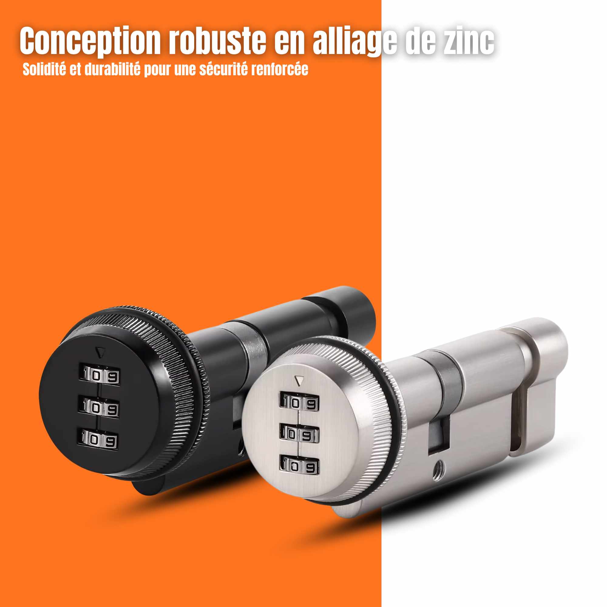 Le corps de la serrure est fabriqué en alliage de zinc, un matériau sélectionné pour sa densité et sa résistance mécanique.