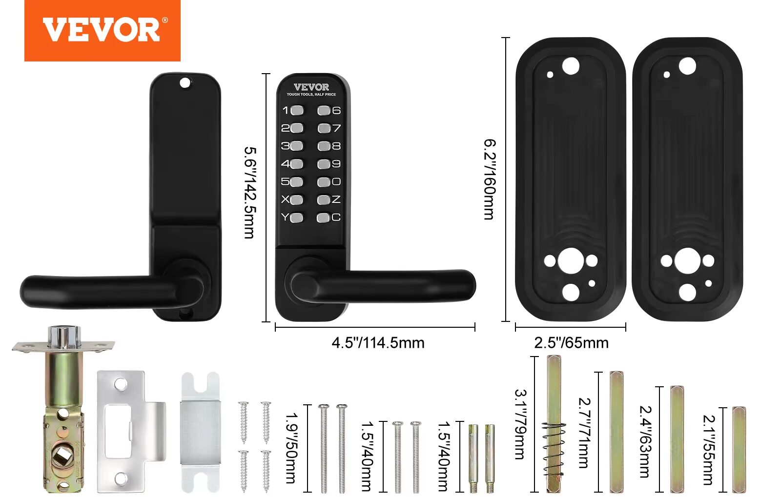 Le colis contient la serrure à code, le kit de visserie, les accessoires de montage ainsi qu'un guide d'installation.