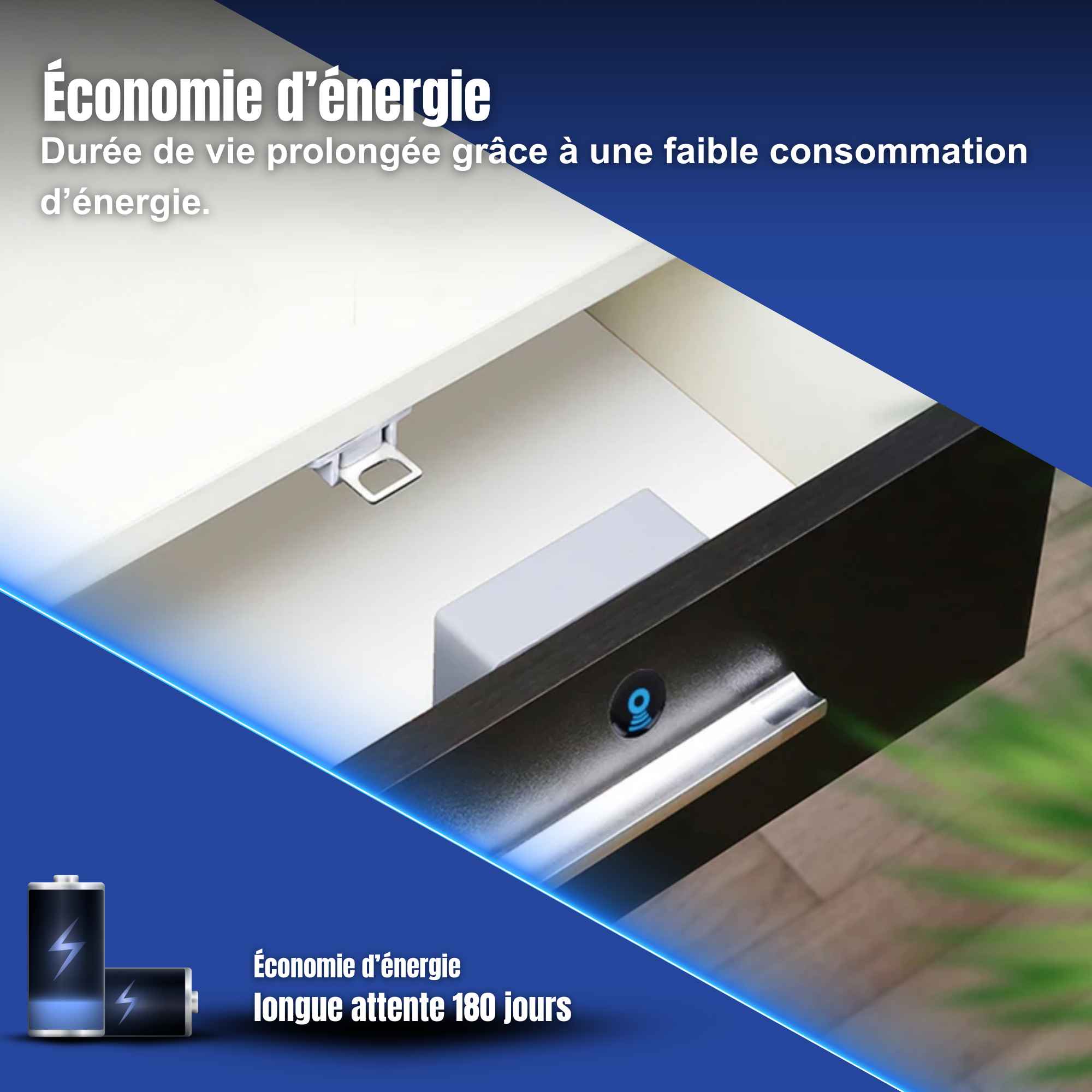 Alimentation à faible consommation offrant jusqu’à 180 jours d’utilisation continue. Inclut un système de gestion optimisée pour réduire la fréquence de remplacement des piles.