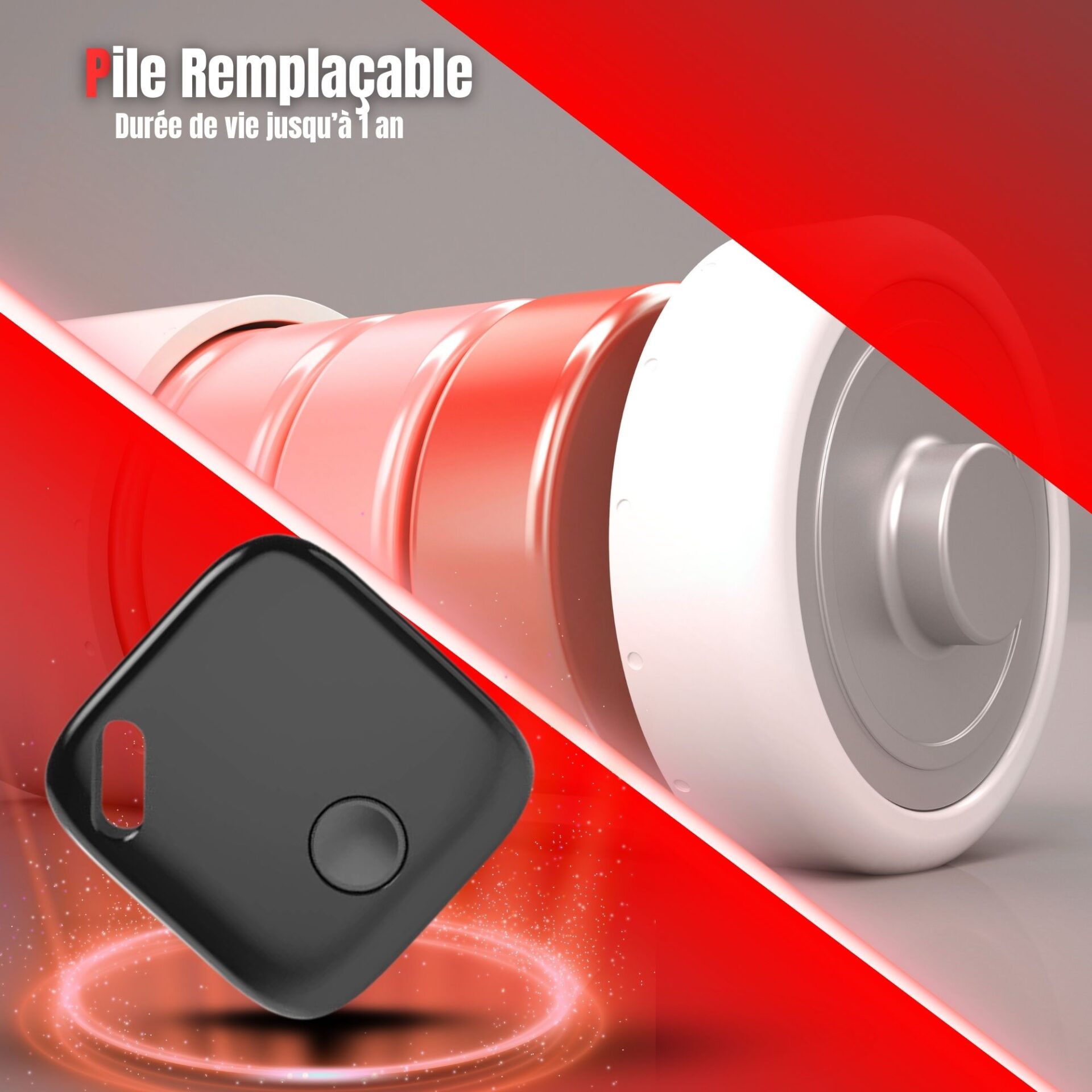Le dispositif est équipé d'une pile à haute efficacité, offrant une autonomie prolongée adaptée à une gestion quotidienne des objets personnels sans recharge fréquente.