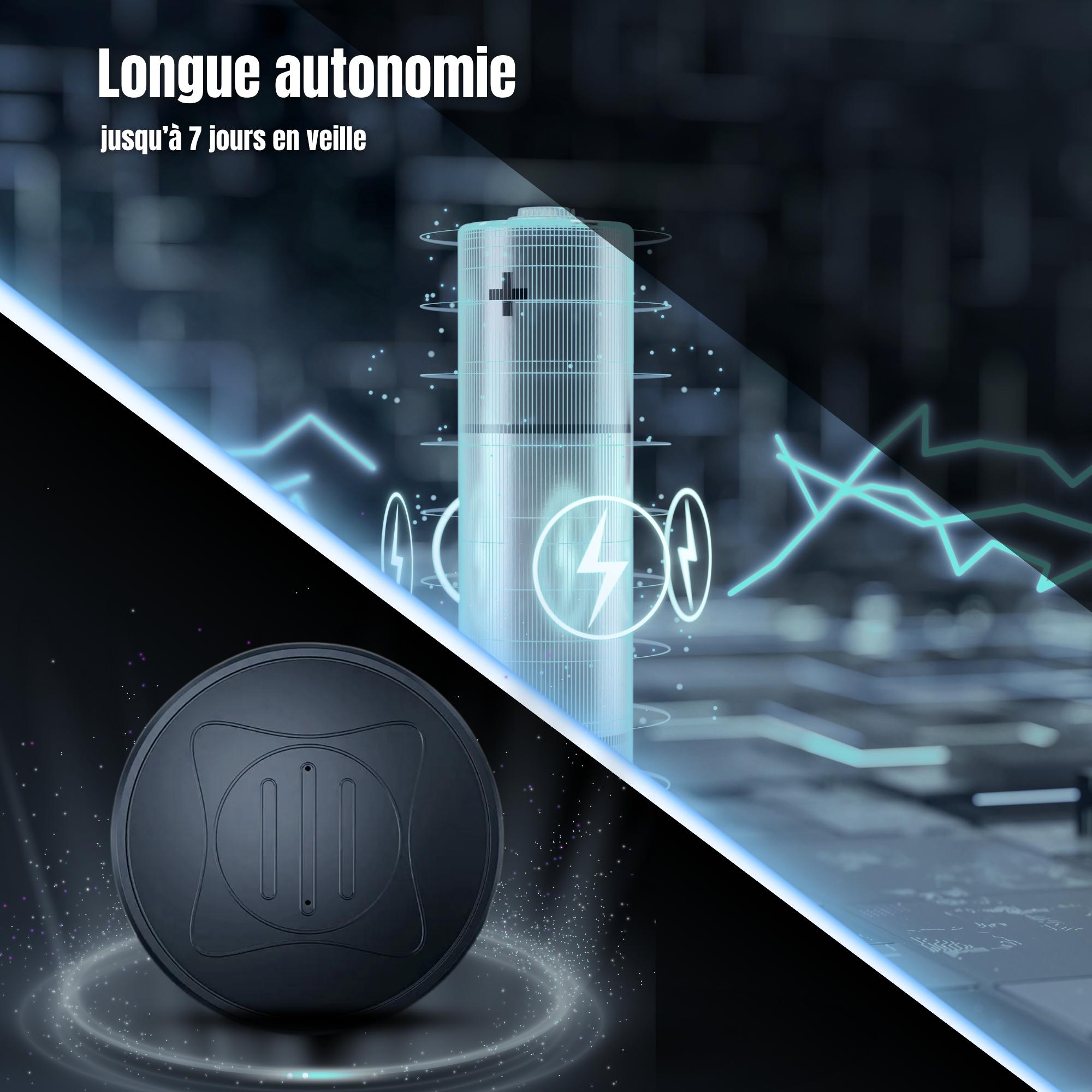 Le module dispose d'une autonomie technique allant jusqu'à 7 jours en mode veille. La recharge s'effectue via une interface USB standard (5V DC).