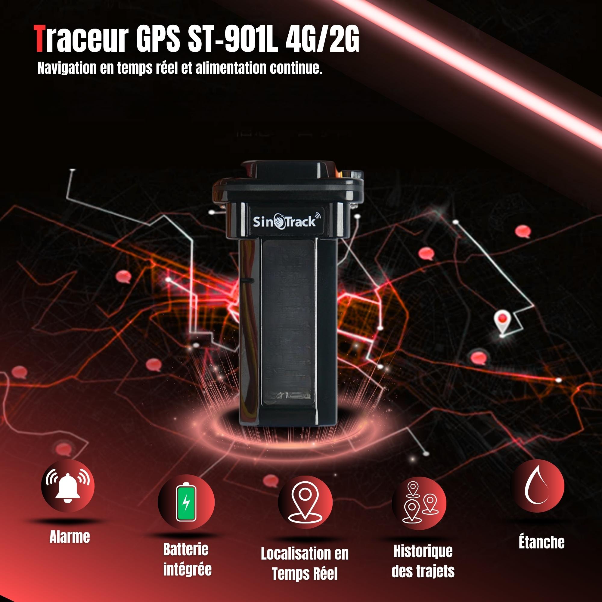 Unité de géolocalisation ST-901L compatible avec les réseaux cellulaires haut débit, incluant un système d’alimentation hybride via le véhicule et une cellule de secours intégrée.