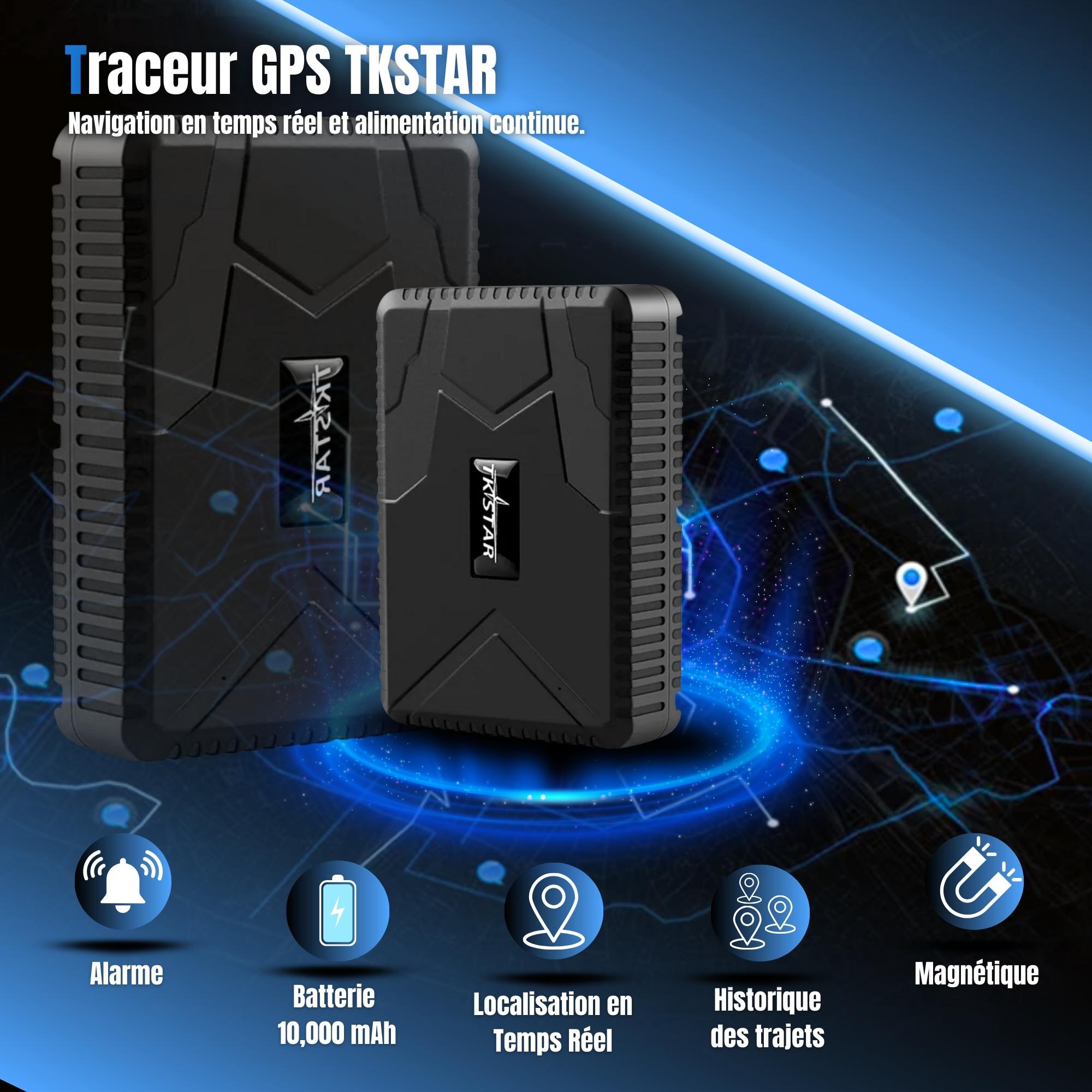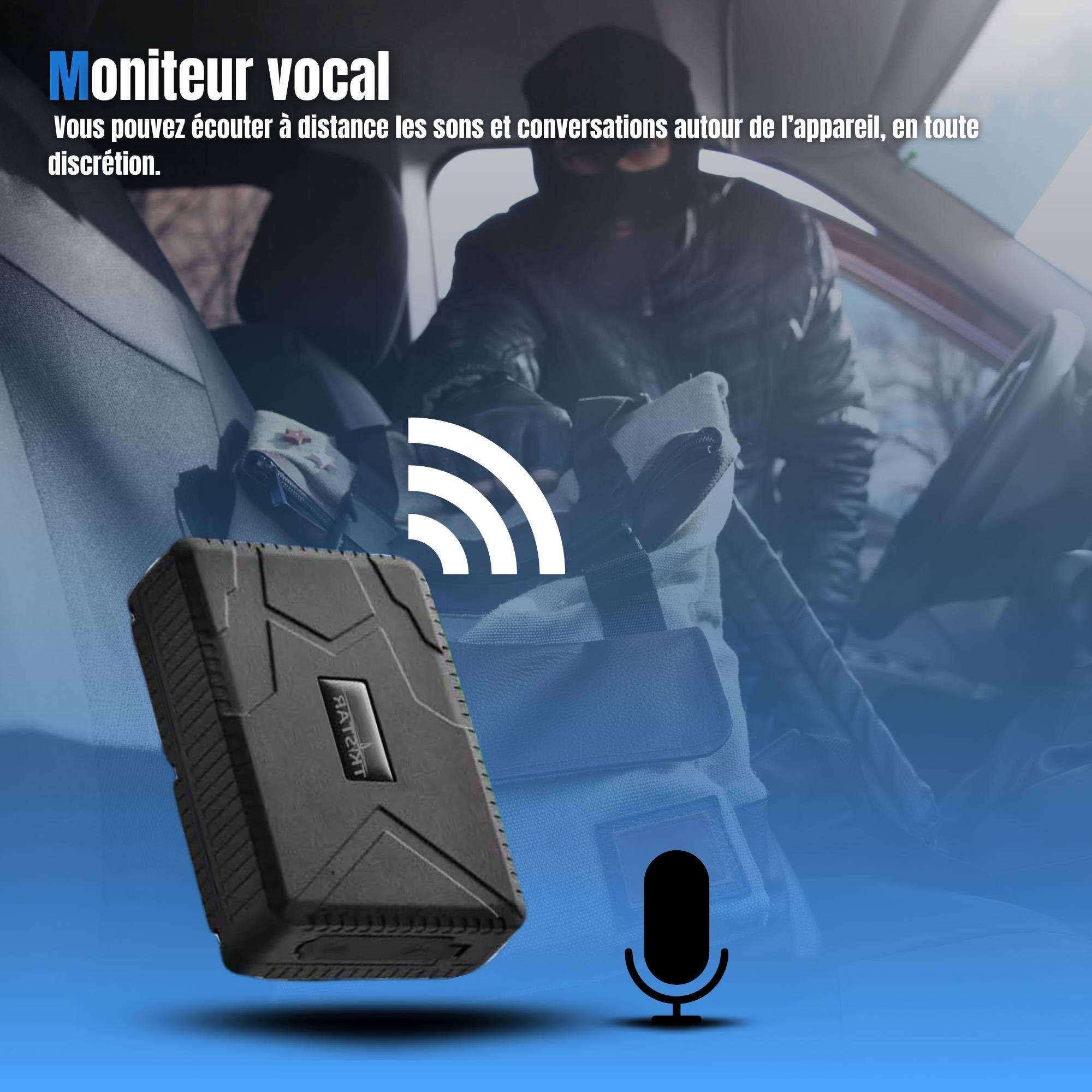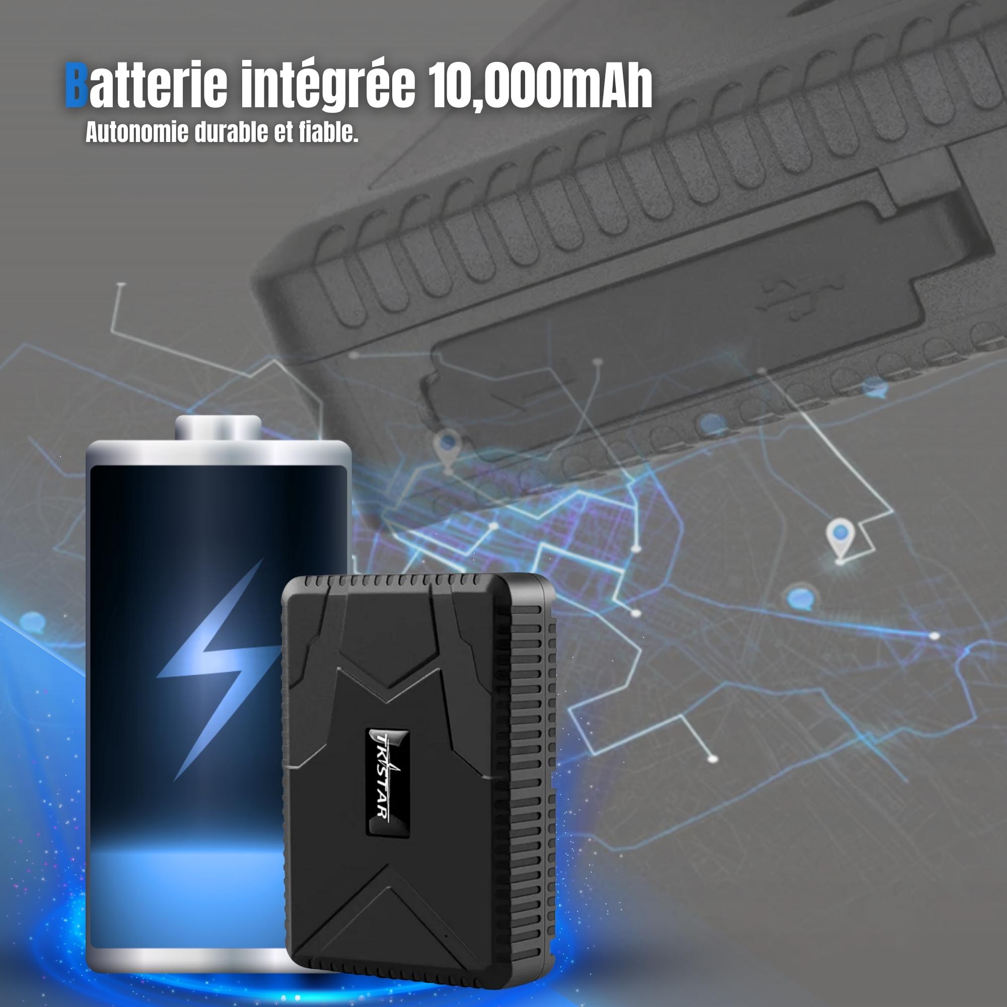 Dispositif de géolocalisation haute capacité doté d’une batterie lithium-ion de 10 000 mAh et d’un socle magnétique puissant pour une installation sur supports métalliques.